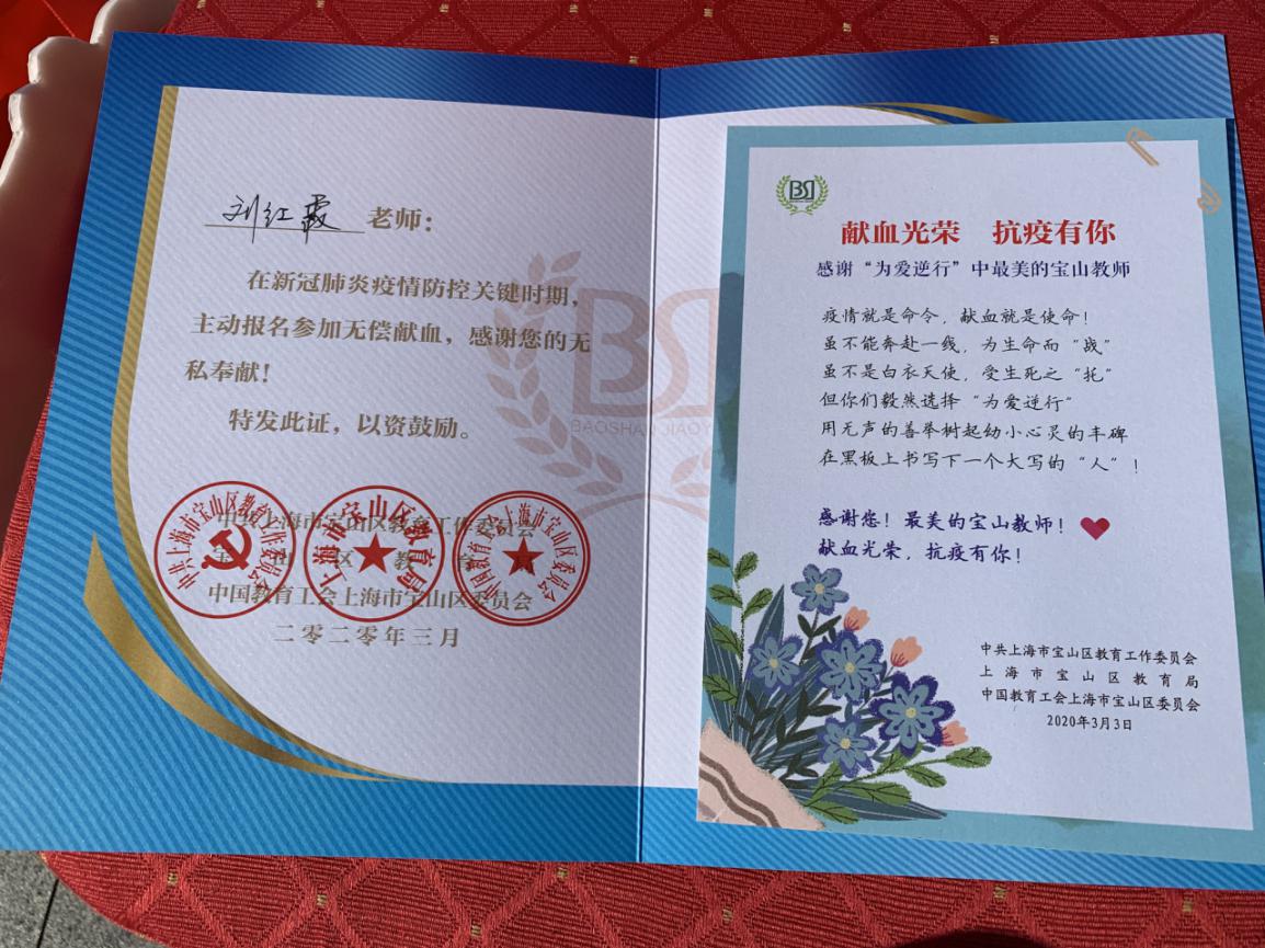 近日,因新冠肺炎疫情爆发,日常献血采血工作受到一定影响,血液库存持续走低,临床用血保障面临挑战。在这特殊时刻,我校刘红霞老师自愿参加无偿献血,为拯救生命做出贡献,用热情接续爱心,用行动诠释师者仁心。