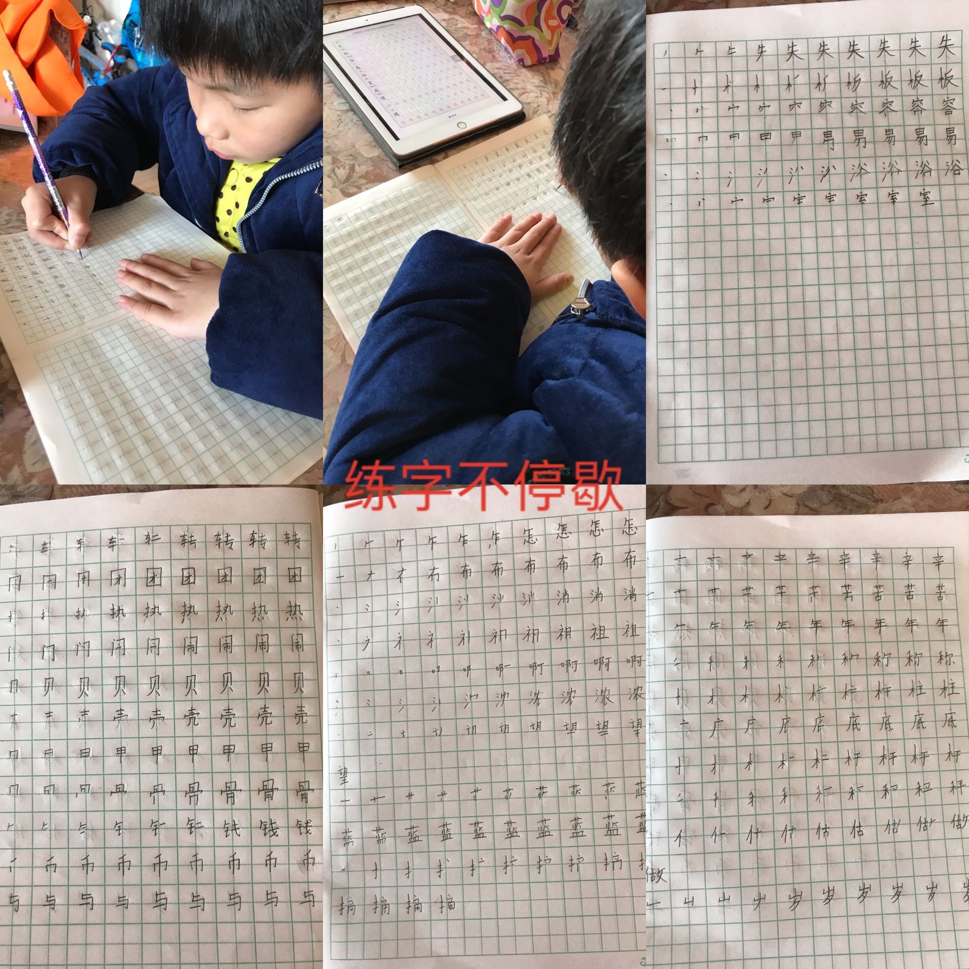 书声琅琅的小读者:当然,在停课不停学的正确理念倡导下,我们上外附属宝山双语学校的学生也不落下学习的步伐,坚持练字的任务必不可少,瞧,孩子们的字正一日日的越变越好。