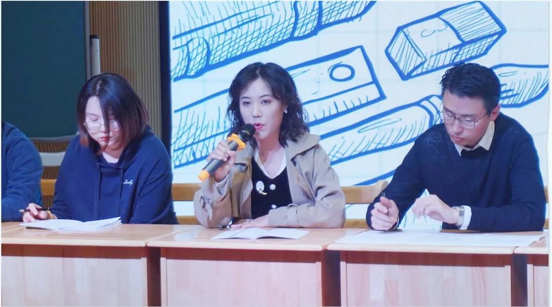课后,姚老师在说课中分析学情、分析教材,介绍磨课过程。团队成员的评课更是各有侧重,有的老师结合自己上课和今天听课的对比说出了学习感悟;同年级两位老师的评课结合自身对教材的剖析、理解;高、低备课组组长师进行了跨学段点评与备课组核心问题研究的汇报;更有语文老师跨学科的评课分析。教导处对这节课进行提炼、总结,并对同类型的课分析如何帮助学生数学建模的研究方向。