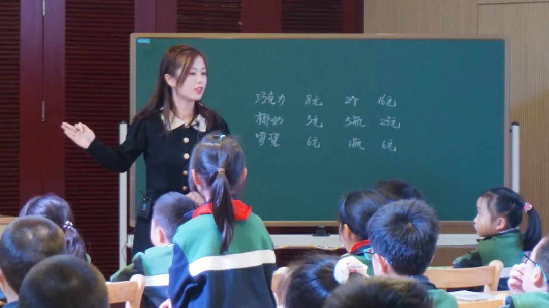 教研组长向全体教师介绍数学组的成长故事。数学教研组作为校星级组室,是一支拥有20人的专业化教师队伍。组内优秀青年姚老师向全体教师展示了一堂三年级的《单价数量总价》数学课。