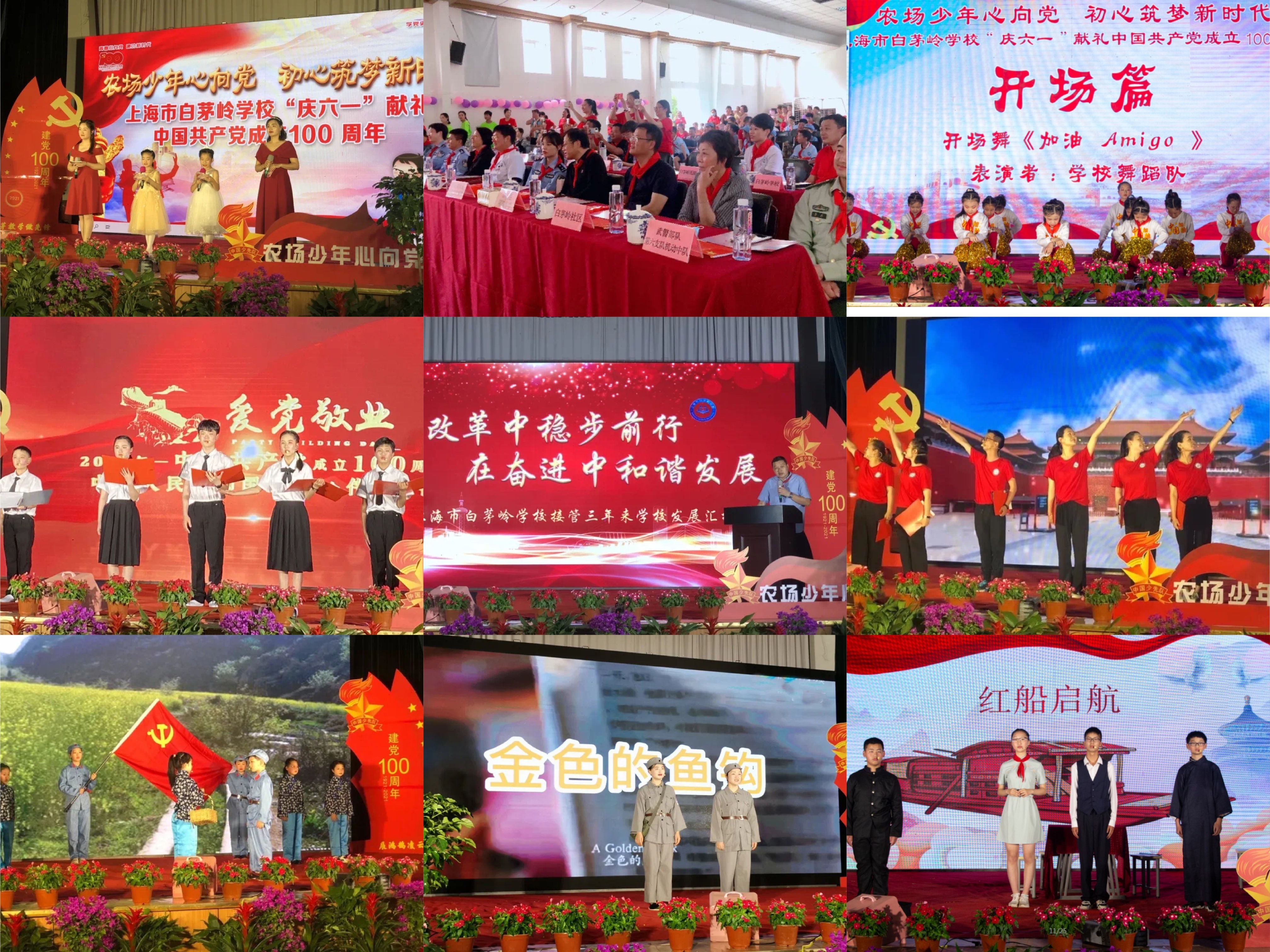 近日,上海市白茅岭学校两校区(白茅岭校区和军天湖校区)首次同台展演,共庆“六一”。在全体人员齐唱《中华人民共和国国歌》歌声中,上海市白茅岭学校“庆六一”献礼中国共产党成立100周年主题集会拉开了序幕!