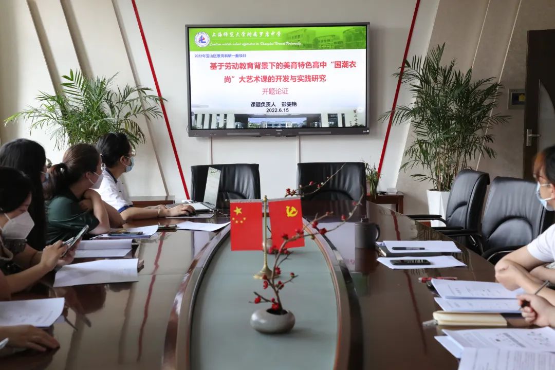 随后,两个课题的主持人吴果恒老师和彭雯艳老师分别就各自课题《以社团活动助推高中生古诗文审美力培养的策略研究》和《基于劳动教育背景下的美育特色高中“国潮衣尚”大艺术课的开发与实践研究》从选题的背景、研究的内容、研究的目标以及研究的方法,研究的思路,研究的组织分工以及预期目标等展开详细陈述。