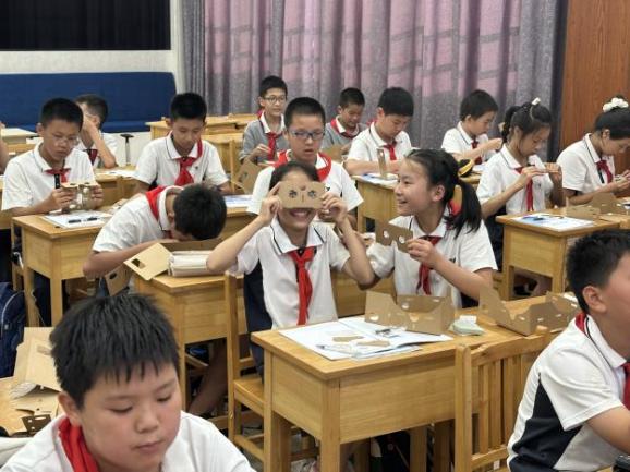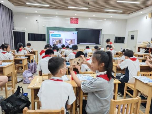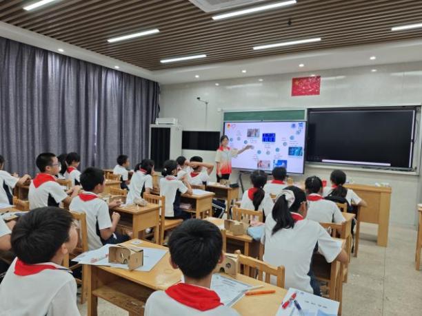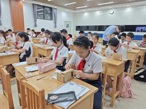 拿到材料后,同学们迫不及待地投入制作,当同学们戴上自己制作的VR眼镜,看到沉浸式画面的那一刻,教室里满是“太神奇了”,大家纷纷举着自己的作品展示。这种“亲手制作+即时体验”模式,不仅让同学们直观掌握VR技术与AI结合的原理,更建立起“科技可实践、创新可落地”的信心,激发起主动探索科创领域的内在动力。