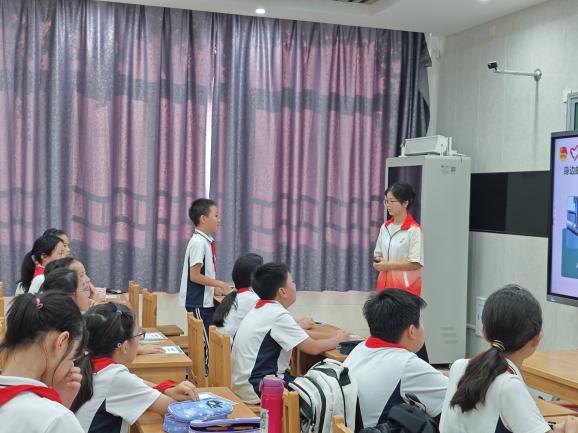 “除了电影,AI还藏在我们的日常生活里哦!”在主讲人引导下,同学们开始寻找身边的AI:校门口刷脸就能签到的人脸识别系统、家里会避开障碍物的扫地机器人、景区中的VR虚拟导游……一个个贴近校园与家庭的场景,让同学们纷纷举手分享自己接触过的AI产品,在你一言我一语的分享中,“科技遥远”的认知被打破,同学们也真切感受到前沿科技早已与生活紧密关联。