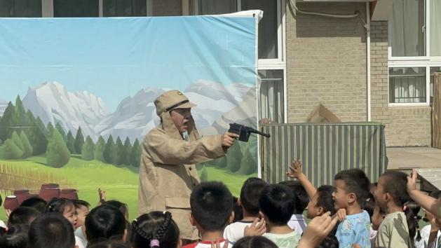 观看红色木偶表演时,孩子们静静围坐,目光紧紧追随着剧情。时而屏息凝神,为英雄的经历揪心;时而小声讨论,分享自己的感受,在观看表演间感受英雄精神,慢慢读懂“和平”二字的分量。