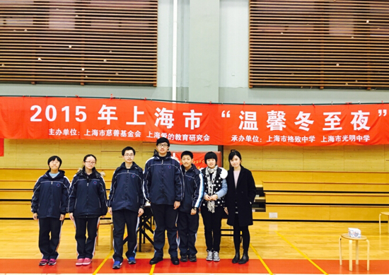 12月20日,由上海市慈善基金会和上海市爱的教育研究会主办,光明中学以及格致中学承办的2015年上海市“温暖冬至夜”主题活动暨“蓝天下的爱”开幕仪式,在上海市格致中学拉开了帷幕。