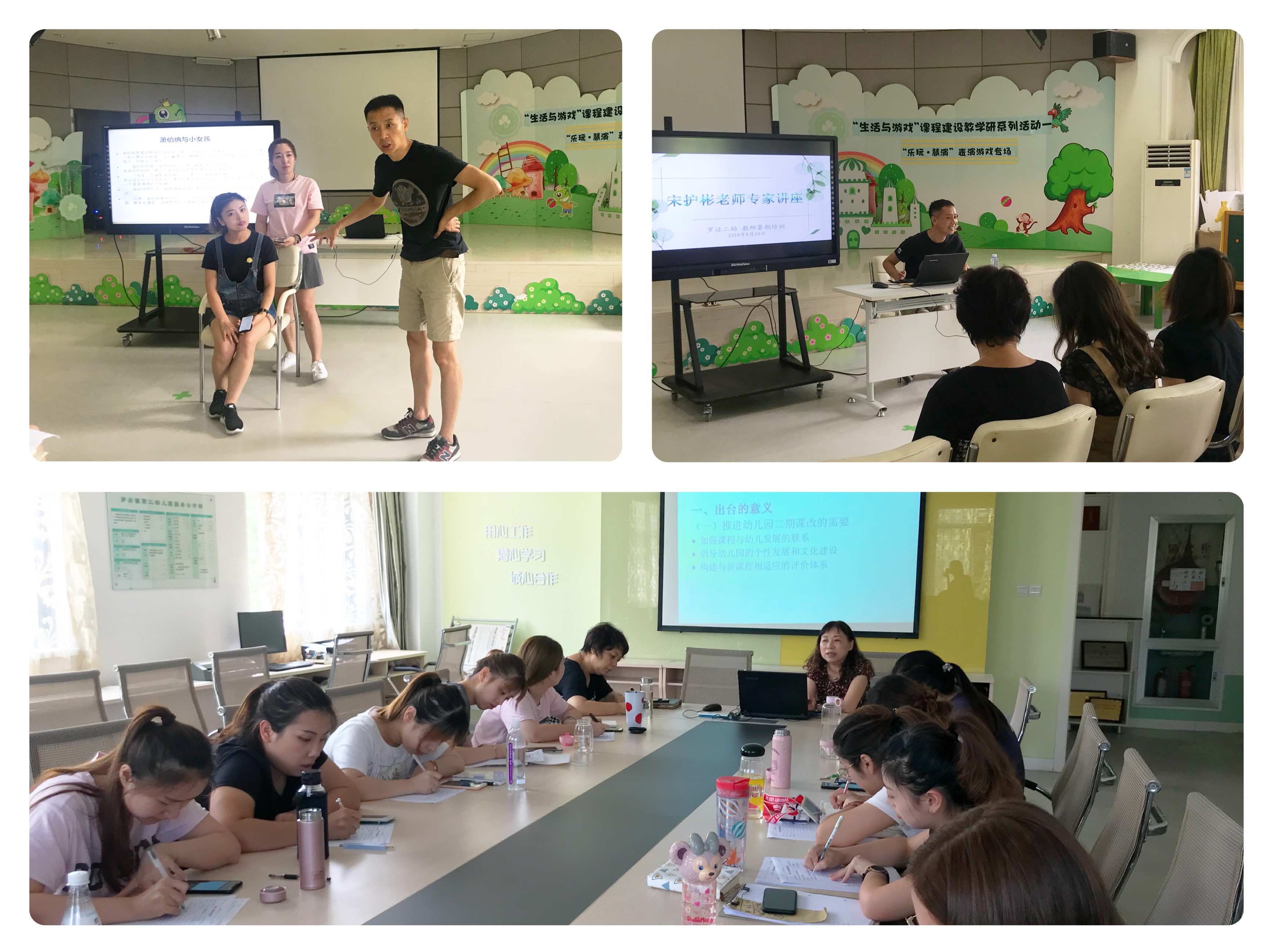 罗泾镇第二幼儿园在2018年8月20日拉开了为期三天的教师暑期培训。本次活动以“面向全员、共同提高”为导向、以促进教师专业发展为核心、以提高师德素养和课堂教学能力为目标、以集中培训和实战演练为主要组织形式。