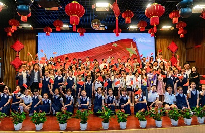 课堂体验后,沪港师生在五楼大礼堂欢聚一堂。我校校长朱华致欢迎词,香港圣公会圣约翰小学的老师代表也非常感谢华师大宝山实验学校热情洋溢的接待。当双方学校互换校旗、互赠礼品时,交流活动达到了高潮,礼堂里一派祥和融融、沪港一家亲的气氛。之后,我校的吉他、葫芦丝、合唱三大艺术社团为远方的同胞们献上了精彩的演出。最后,沪港师生一起挥舞着鲜艳的国旗,共同唱起了《我和我的祖国》这首歌曲,表达了同根同心的民族情感和对祖国母亲的一片深情。