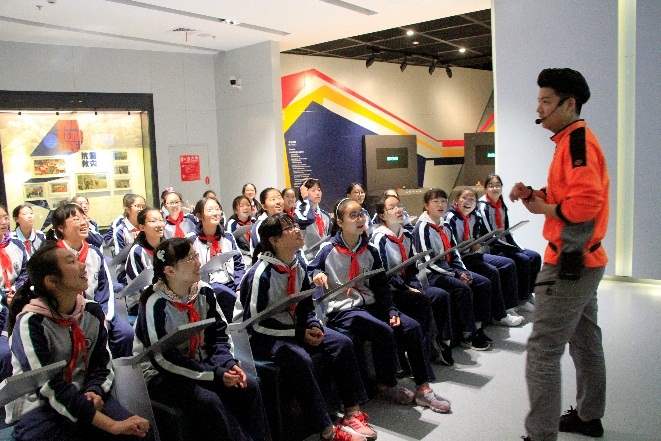我校师生到达基地后在基地老师们的带领下参与了“道路交通”、“气象灾害”、“轨道交通”、“地震灾害”、“紧急救护”、“消防安全”、“防空安全”、“日常生活安全”八个实训馆学习体验。每一个实训馆都配备了集成性和交互性的多媒体技术与设备,采用不同对象实训标准,让参训者的身体上产生肌肉记忆和心灵上生成意识概念;每一个课程老师都对主题场馆内的安全知识进行了详细的解读和指导,每一次的亲身模拟体验都让孩子们惊呼“啊,这样太危险了!”