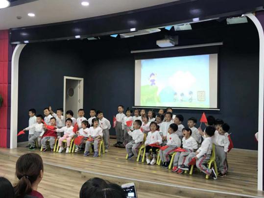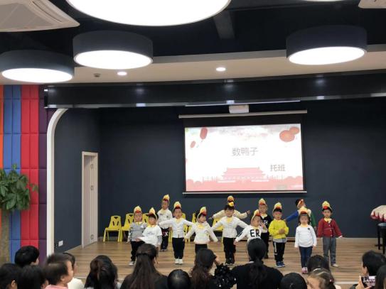 首先是我们的小一班的孩子们给大家带来了《红太阳照山河》,孩子们举着小国旗跟着音乐挥舞着,小嘴巴里唱出洪亮的歌声。接着上场的是一个个“小红军”他们举着红星,用嘹亮的声音歌唱《红星闪闪》,小三班的“小红军”们各个都精神抖擞。最后是由我们年纪最小的托班弟弟妹妹们带来的表演《数鸭子》,虽然在第一遍的小眼睛都在寻找自己的爸爸妈妈而忘记了自己的动作,但在老师的带领下,一只只“小鸭子”们动起了各自的翅膀表演给台下的观众们看。虽然小二班的孩子不能和我们一起庆祝,但是在小二班两位老师的带领下,他们在自己的班级里向爸爸妈妈们表演《好妈妈》,也感动着现场的妈妈们!