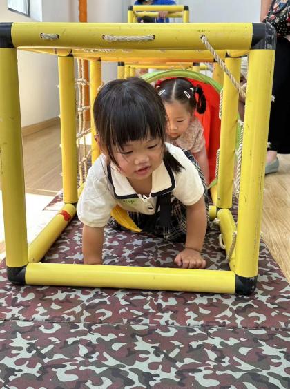 随后,精彩、有趣的运动游戏正式开始啦!宝贝们在“探险”的同时也能得到钻、爬、上肢力量等运动能力的发展。