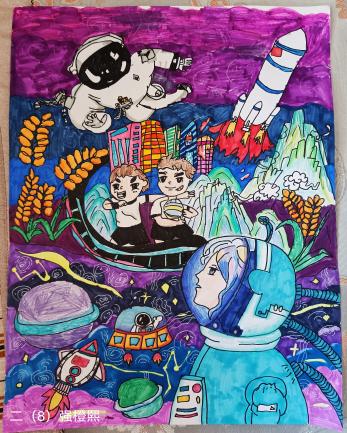 作品充分展现了同学们的想象力、创造力,更表达了他们心中对党和祖国的热爱之情。作为共产主义的接班人,肩负着中华民族伟大复兴的历史使命,希望同学们继续努力,心中有梦,坚定目标,为中华民族的伟大复兴奋斗。