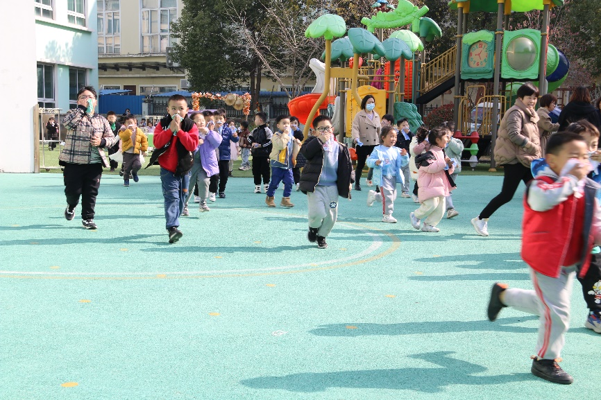 随着警报声响起,罗泾镇中心幼儿园消防逃生演练正式拉开序幕。孩子们迅速从教室中撤出,按照预先的安排有条不紊地奔向指定的安全区域。到达安全地带后,每个班级的老师立即清点人数,确保无人遗漏,并将情况汇报给安全负责人,完成了此次逃生演练。