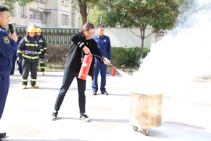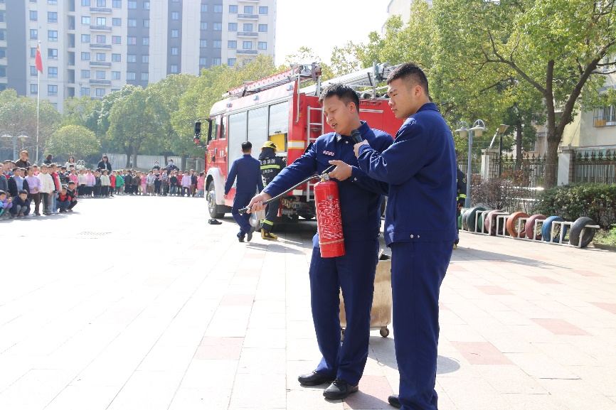 孩子们目睹了消防员穿着战斗服的英勇风采;还见识到了消防员熟练地使用灭火器扑灭火焰的场景。保安队长朱师傅和张静芬老师也亲自体验了使用灭火器的过程,进一步提升了校园的安全防范能力。