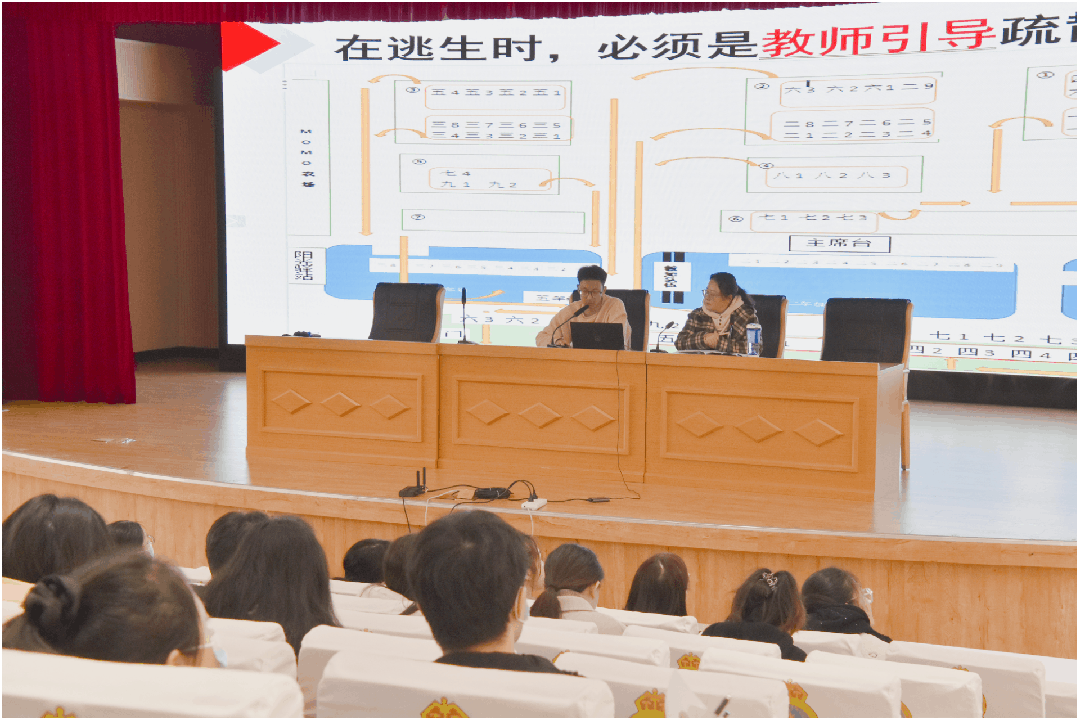 在全教会上,组织全体教师在阶梯教室集中学习火灾逃生12字诀、消防安全知识和技能,复习校园火灾撤离路线。在提升消防安全意识的同时,也给师生生命上了一道保险。