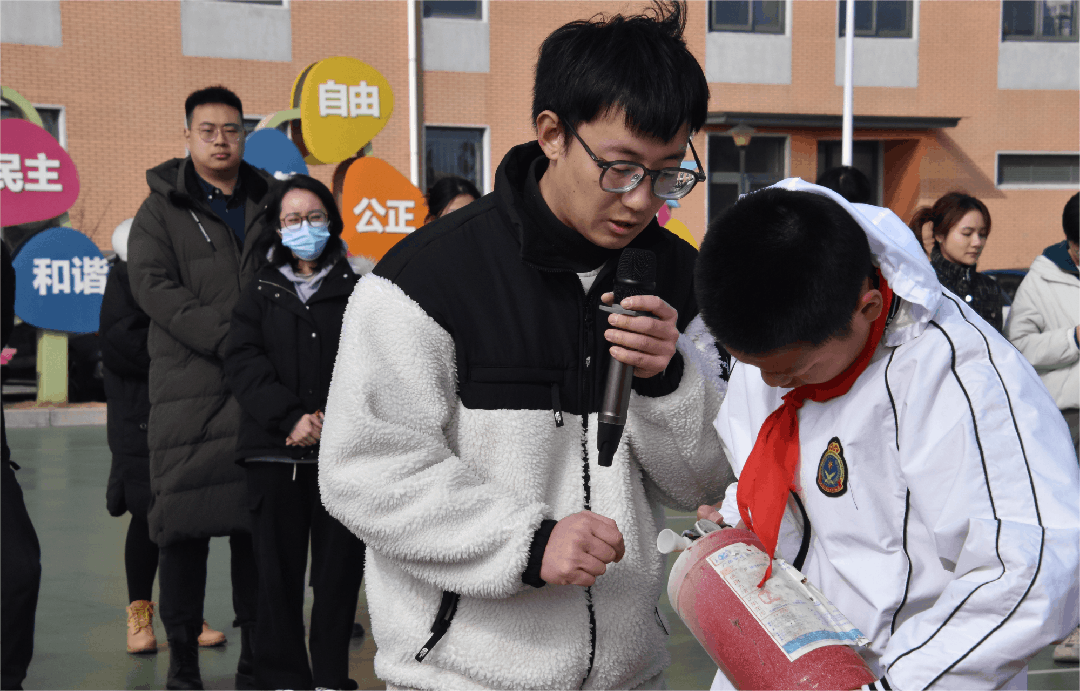 伴随着预先警报的响起,4-9年级学生在老师的组织下,有条不紊地迅速疏散到安全的指定地点,各班整队后及时清点人数并由各班班长和各年级组长向疏散点负责人报告。随后,由政教主任组织讲评,安全专管员在操场进行灭火器的使用实操示范。在实践讲解环节邀请在场的同学,亲身体验消防器材的正确使用,同学们通过实践讲解与操作收获颇丰。