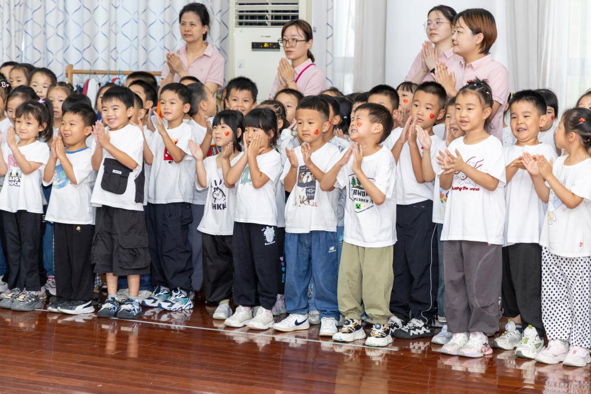 中班组的小朋友们率先亮相,他们迈着稚嫩却坚定的步伐入场。音乐响起,每一个伸展、每一个跳跃都充满了童真与朝气,红扑扑的小脸上写满了认真。他们的笑容如花朵般绽放在舞台上,动作协调,队形变换有序,充分展现了一个月来的飞速进步与可喜蜕变,赢得了评委和老师们的连连称赞。