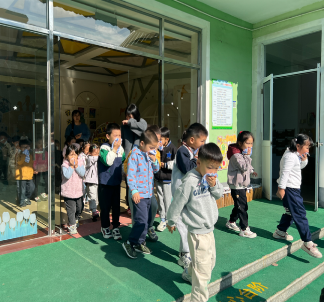 在“119”消防宣传月框架下,园所联合属地派出所何赟警官开展消防疏散演练——实战疏散。全体师幼按分路线(侧门、大门等差异化动线)规范撤离,5分钟内安全集结至操场,全程秩序井然。