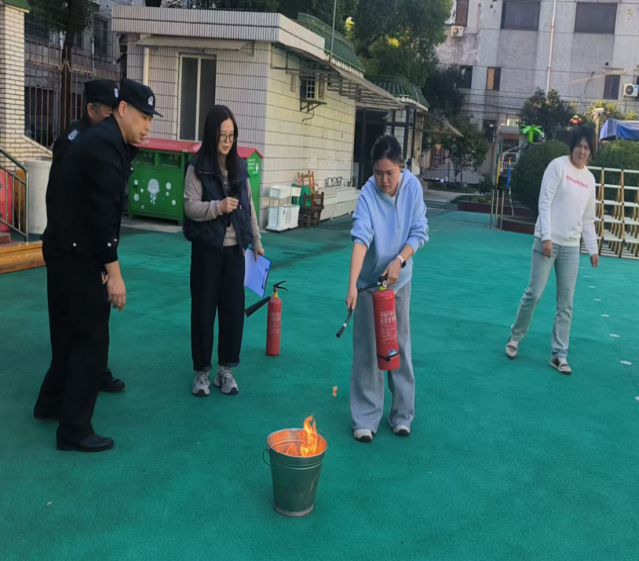 何赟警官现场开展消防知识互动问答,演示灭火器操作并讲解用途,让幼儿从“会逃生”延伸到“懂消防”,让安全教育更生动落地。