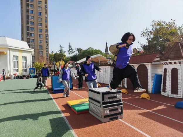 大班“星球大战”里家长与孩子互掷沙包欢乐躲闪,“垫子大冒险”中亲子协作完成攀爬翻滚,“一圈到底”考验着默契的肢体配合……每个游戏场地都洋溢着欢声笑语,孩子们在家长的陪伴下,既锻炼了平衡、协调、力量等运动技能,也在互动中拉近了亲子距离。