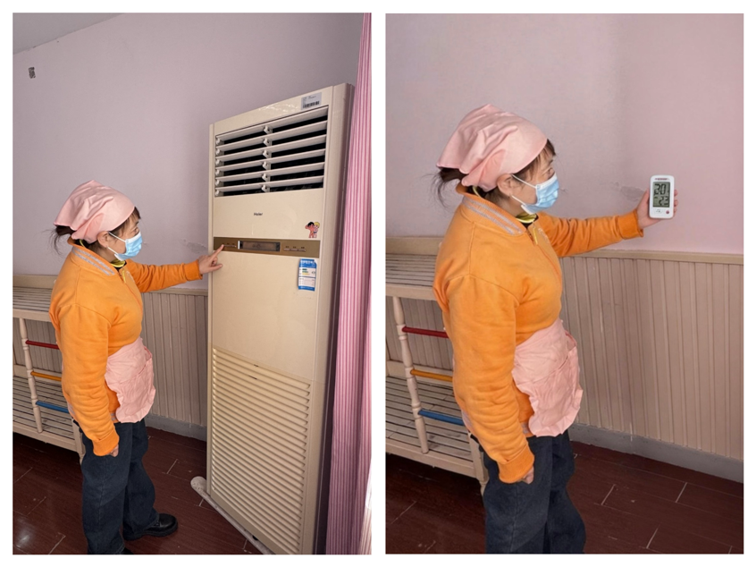 在园内环境保暖上,幼儿园将室内恒温守护放在首位,提前完成全园空调系统的全面检修与调试,每日幼儿入园前1小时准时开启制热模式,精准将活动室、午睡室温度稳定在22-24℃的舒适区间。保育老师建立常态化巡查机制,每2小时检查一次空调运行状态和室内温度,及时排查问题,确保幼儿在温暖的环境中学习、游戏、休憩,为孩子们打造安全舒适的室内小天地。