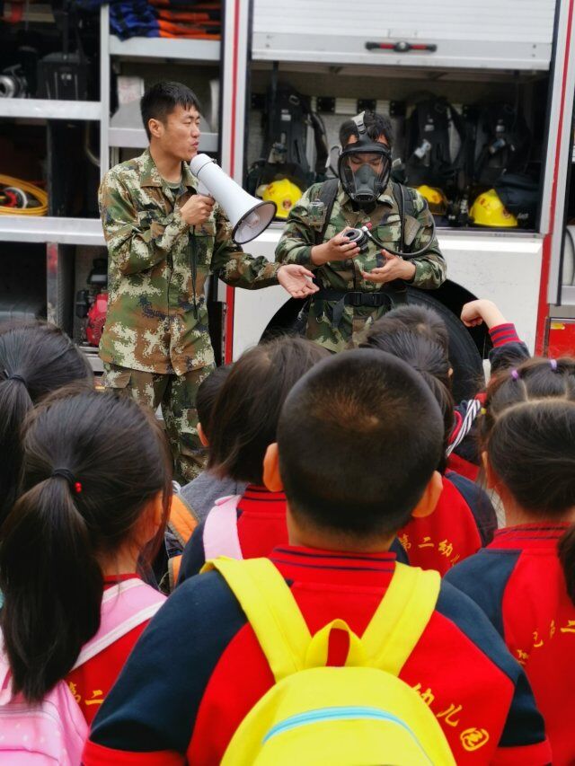 2019年4月19日上午我园大班幼儿参观了顾村消防中队.