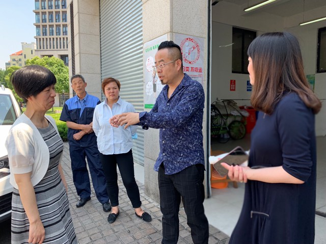 等候我们多时的物业汪经理和淞南环卫所的沈书记热情洋溢的带领我们参观了生态园。第一个映入眼帘的是落叶回收区,把叶子收集起来变成肥料,用来浇灌田地,既环保又节约。随后,一路走去又看见了变废为宝的路灯,还有沿路铺设的自行车轮胎等,又环保又有创意!生态园里的一些出乎意料之外的设施,让我们看到了时尚、前沿的环保理念!
