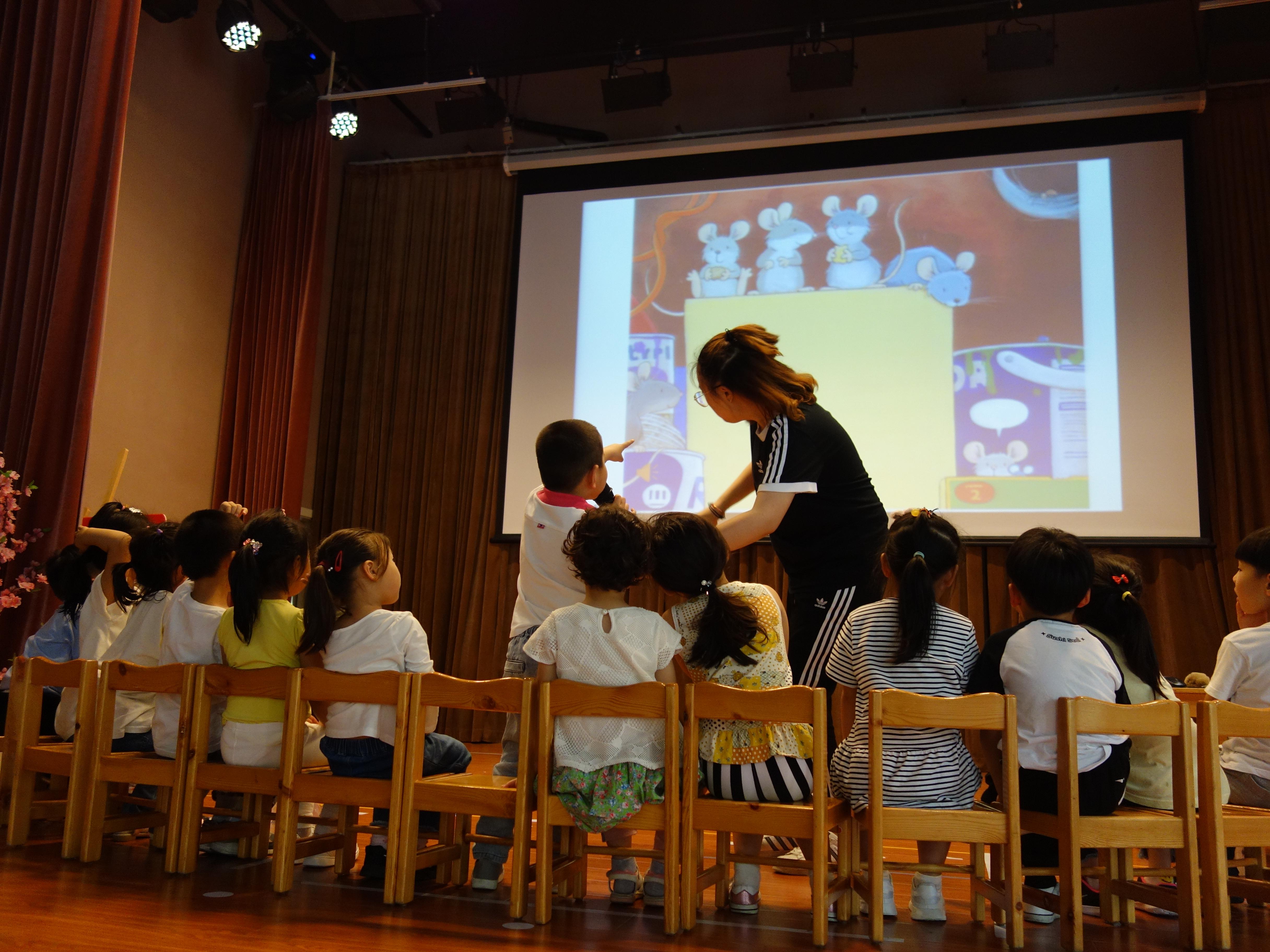 在“小小金话筒”故事比赛中,小班弟弟妹妹通过“颂儿歌”的形式走近阅读;中班孩子“讲故事”的形式浸润阅读;大班哥哥姐姐“演绘本”的形式展现阅读。孩子们会读、悦读、趣读,一同感受着书海的奇妙。