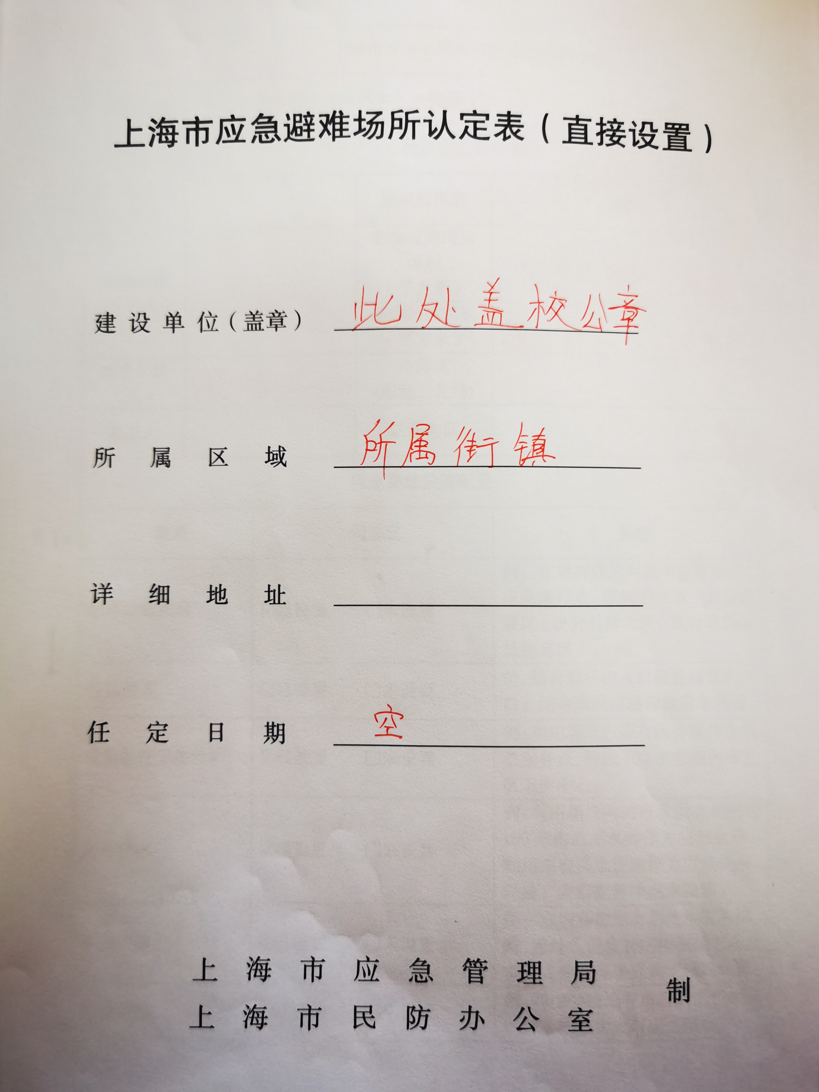 上海市应急避难场所(直接设置)资 料--认定表和备案表.doc