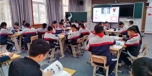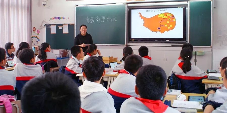 本次活动由区项目组负责人吴逸民老师主持,杨行中学张敏荣校长致辞。活动分为教学展示和交流研讨两部分。首先,与会者分别观摩了杨行中学数学组徐芳老师的数字教材展示课《翻折与轴对称图形(沪教版》和地理组马雪艳老师的数字教材展示课《青藏高原地区(沪教版)》。