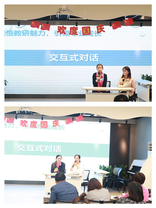 随后的交互式对话通过七色花艺术幼儿园与太阳花幼稚园两园的大教研组长、保教主任“开开杠”,“对对碰”,探讨今天的教研活动要做什么?如何达成?在针尖对麦芒强强交锋中彰显教研魅力。