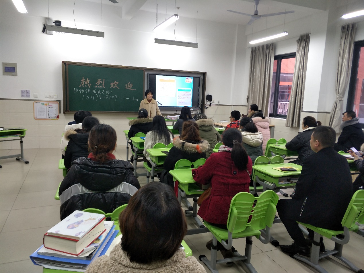 近日,宝山区教育学院钟文丽老师来我校指导,就寒假生活安排和中学数学的学习策略给六年级全体家长作了专题讲座。首先,钟老师展示了朋友圈几则家长和学生假期前的感想,家长和孩子们幽默风趣的调侃让在场的家长和老师忍俊不禁,讲座也在轻松愉快的开场中拉开序幕。