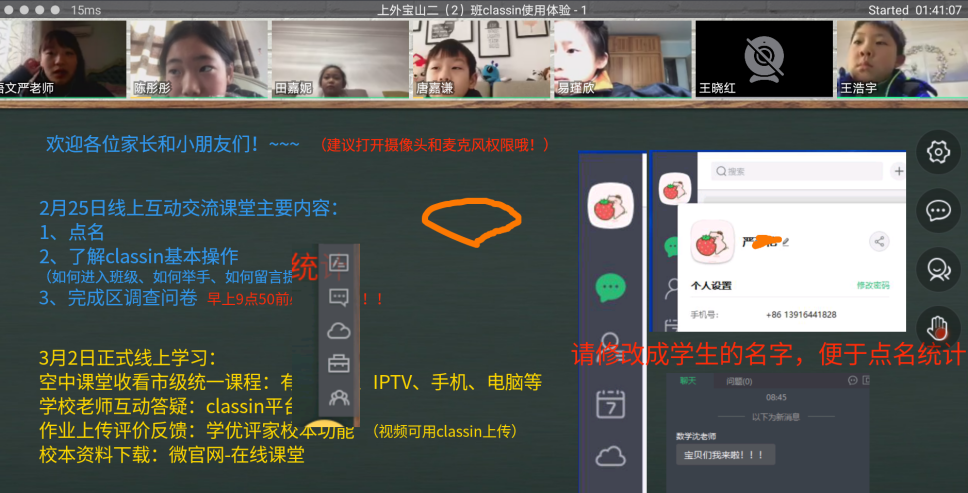 2月24日:为提升教师在线教学能力,我校在classin平台开设了一堂“classin体验课”,全体教师共同参与,邀请技术人员从“课前准备”“基本操作”“授课工具”“课后作业”四方面进行专业的讲解和指导。