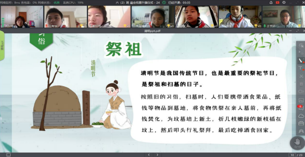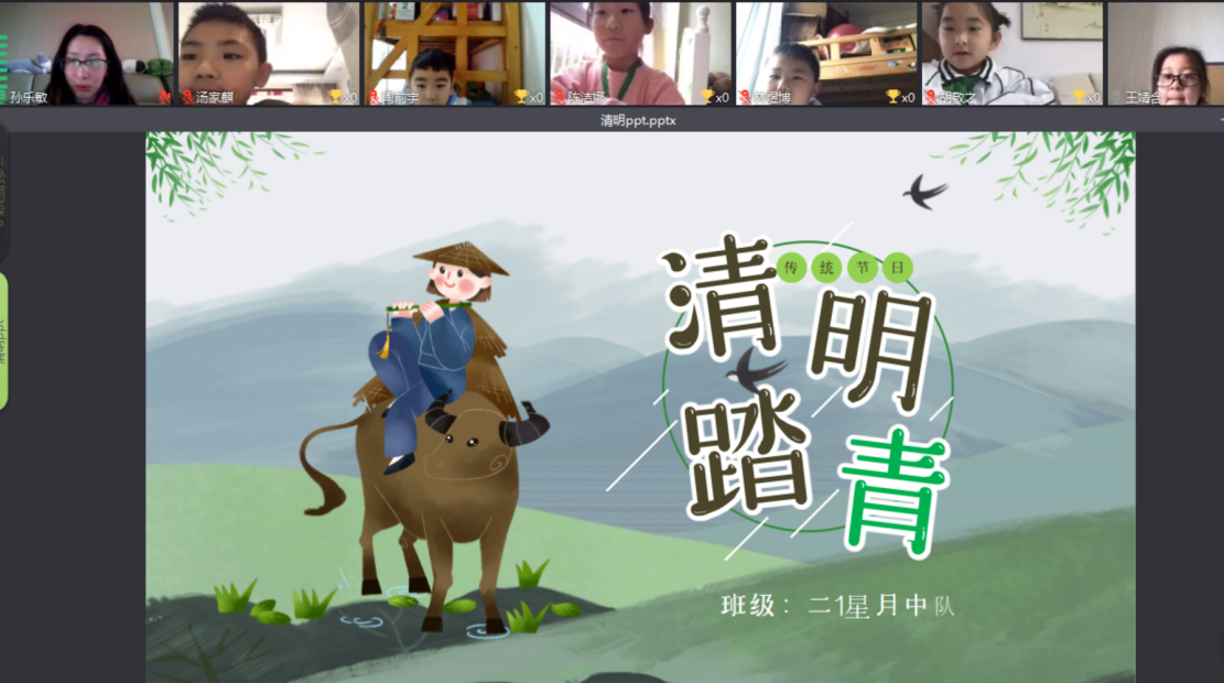 在这特别的日子里,上外宝山双语学校全校师生组织了以“清明”为主题的班会。老师从清明节的由来、习俗讲起,同学们了解了清明的同时,通过诗歌吟诵、视频赏析、故事分享等表达了对祖先以及为国捐躯者的敬仰与缅怀。