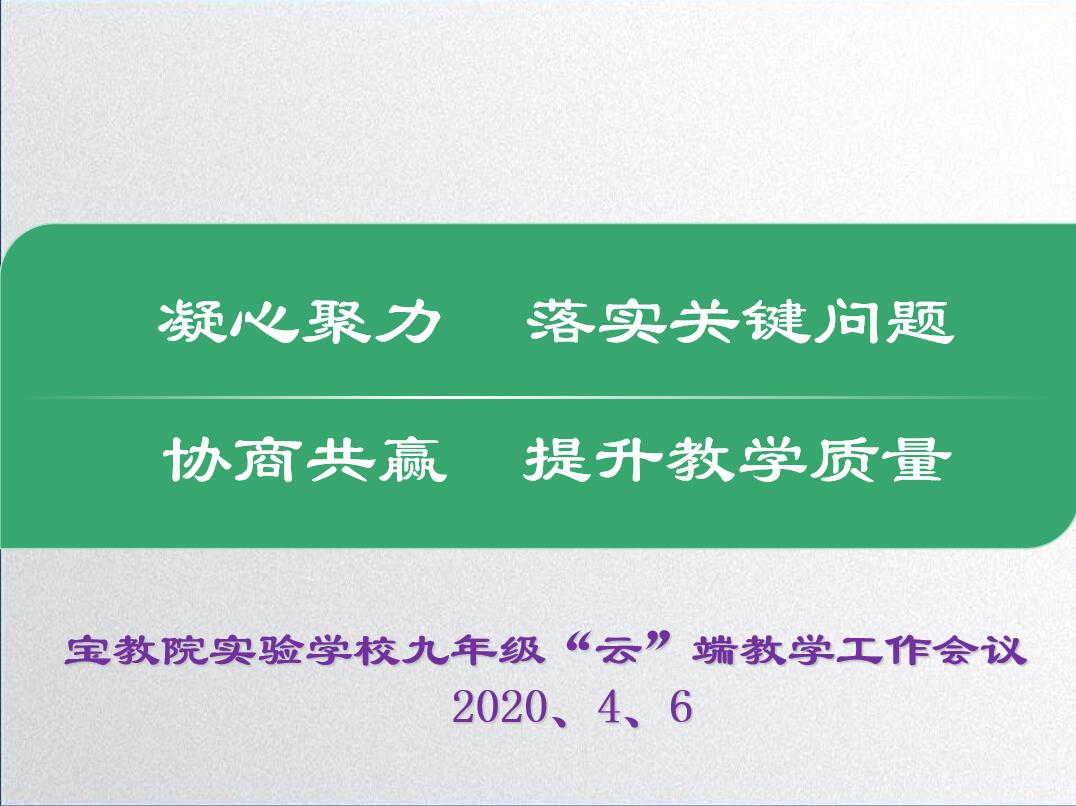 为时3小时的“云”端九年级教学工作会议,振奋人心。相信在所有领导和全体九年级师生的携手努力下,2020届,总有属于我们的成功!