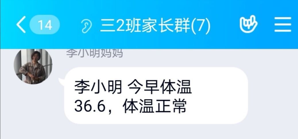 每天在家中,家长帮助学生量体温。每天及时将测温情况通过qq或微信上传给班主任。