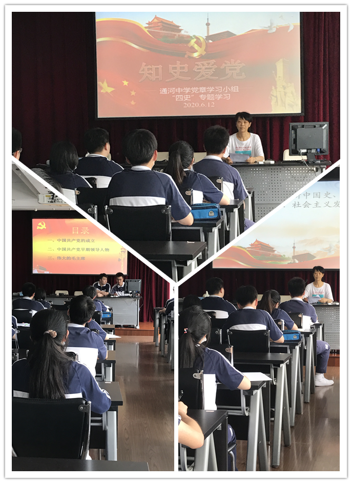2020年6月12日中午,我校党章学习小组在教工会议室进行了知史爱党为主题的“四史”系列学习活动。