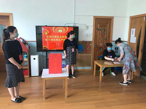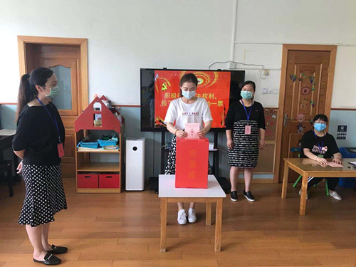 2020年6月19日,上海市宝山区补选区人大代表选举活动拉开帷幕。上午九点整,联建站点准备就绪,标语、选举箱、选票落实到位,工作人员职责明确。我园教职员工在工作人员的引导下,依次排队换取选票,积极行使自己的民主权利,投出了神圣而又庄严的一票。本次选举活动我园共24名教职员工参与,收到有效票数24张,选举活动圆满成功!