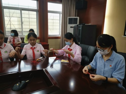 最近一段时间,我校的老师们和六七八年级的学弟学妹们都在用心做着同一件事情:编红手绳,为初三学子们送考祝福。