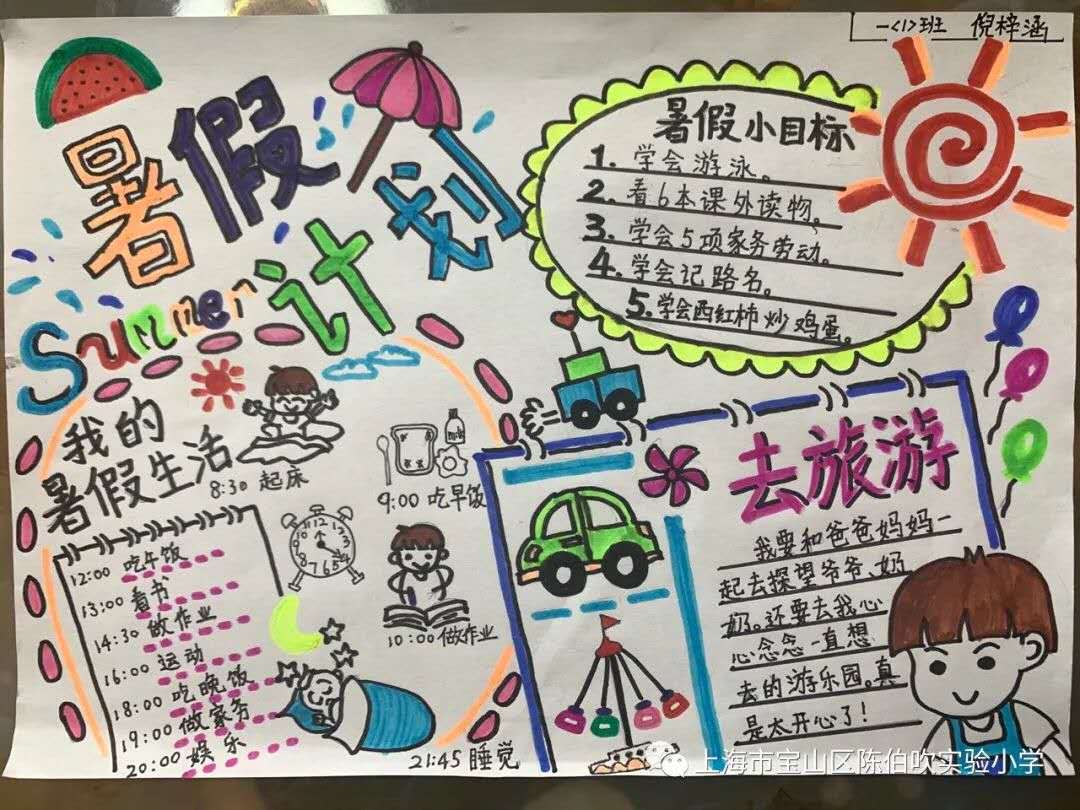 在家长帮助下制订出假期学习、活动作息时间表,暑假生活要有规律,认真有序地完成假期作业,认真进行复习。
