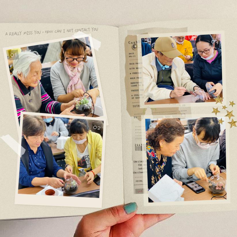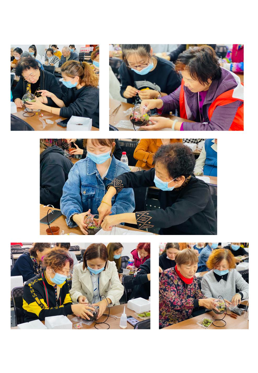 为了弘扬中华民族的传统美德,帕幼全体教师来到了帕堤欧小区居委,和小区老人们一起进行微景观手工制作活动。