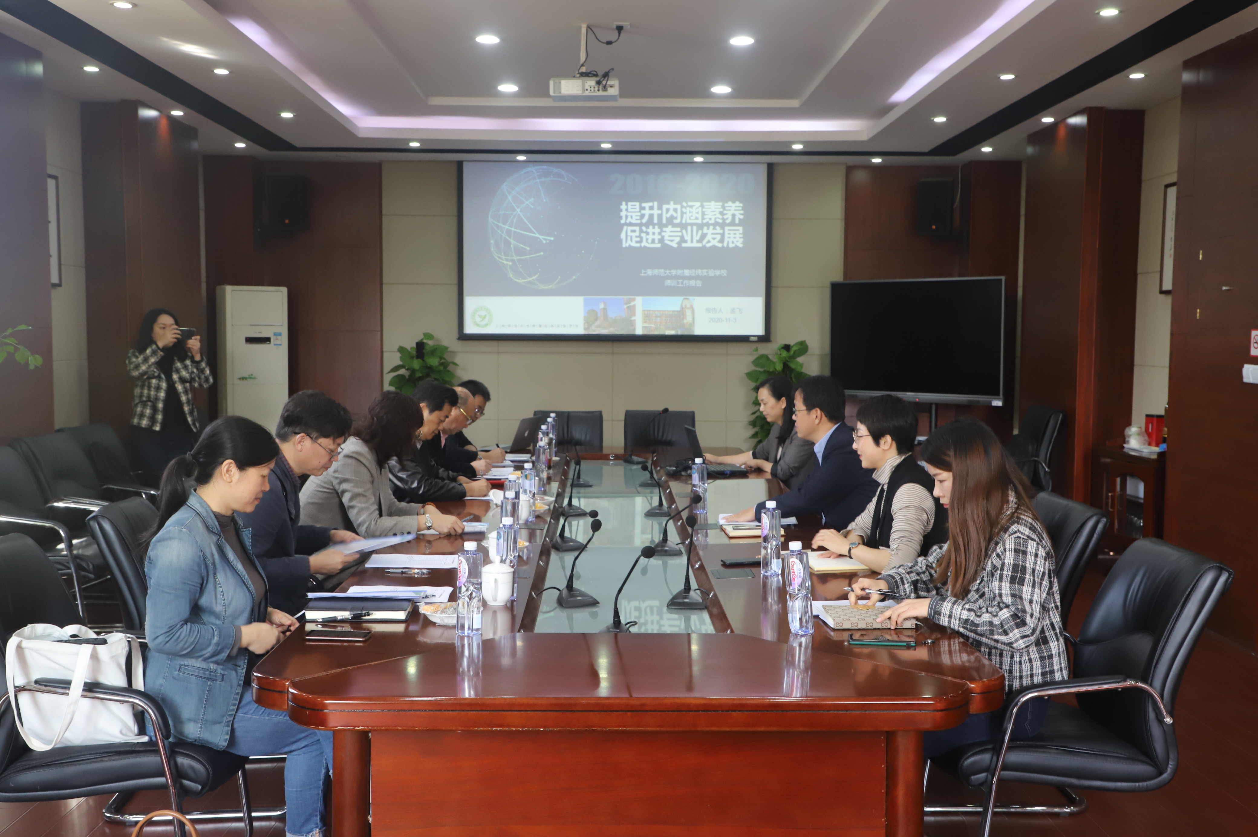 2020年11月3日,由宝山区教育学院院长沈伟,上海市吴淞中学党总支书记、校长张哲人,宝山区教育工会副主席李霞,上海市杨泰实验学校校长万叶华、上海市求真中学校长苏培明及宝山区教育学院师训部老师等人组成的专家团队对我校“十三五”师训工作进行验收评定。