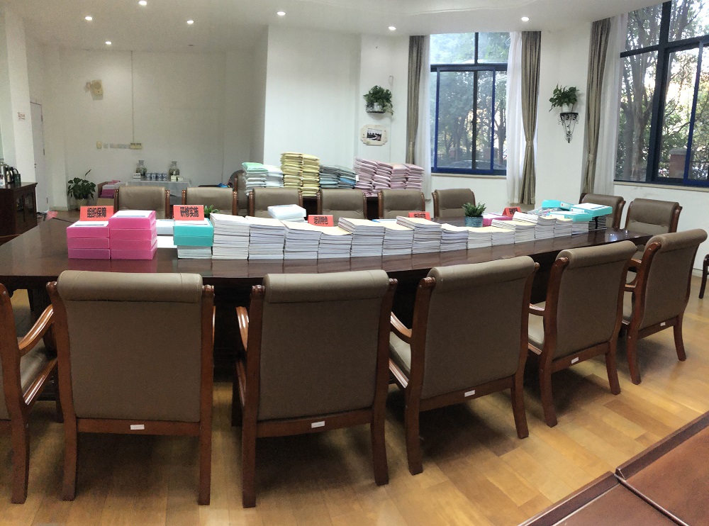 接着是进行集体访谈。专家评审团队针对学校在“十三五”期间开展的校本研训工作,与中层及教师代表进行了面对面的访谈,深入了解了学校的校本研修开展情况与效果以及研修特色、研修形式等。同步进行是查阅资料。另两位专家组老师对学校“十三五”期间的工作档案资料进行了认真地翻阅和检查。