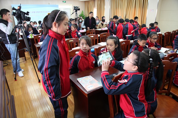 活动伊始,学校课题负责人张微介绍了学校数字教材应用项目的推进情况,以及课题确立之前的一些思考。接着由课题组成员沈老师和她任教班级的孩子们为大家呈现一堂语文研讨课《王戎不取道旁李》。