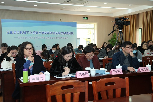 上海市浦东新区教育信息中心谢忠新主任、宝山教育局基教科、宝山区教育学院科研室和信息中心以及所带领的宝山区信息化研究课题管理指导团队,宝山区数字教材应用项目组试验学校的领导老师,以及宝山区长江路小学全体课题组成员参加了活动。