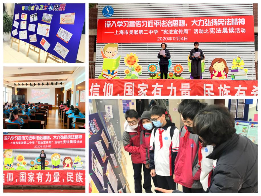 宪法晨读与宣传:12月4日是第七个国家宪法日,学校隆重举行主题升旗仪式并进行“宪法晨读”活动。学校政史地教研组组长、道德与法治高级教师为大家讲解宪法修正过程、宪法的最高效力以及宪法宣传日的由来。党支部书记、校长带领组内道德与法治老师孙浩杰为大家宣读宪法并进行一定的解读。在这个特殊的日子里,全校师生共同领悟学习宪法、尊重宪法、宪法至上、用宪法维护人民权益的重要性。
