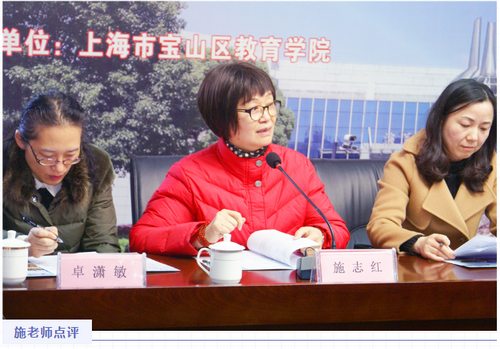 教学研讨时,首先由两位开课老师分别对自己的这堂课从设计到实践做了说课与反思,与会教师代表分别加以点评。接着,全国优秀教师、上海市英语特级教师施志红老师,区教育学院初中数学教研员,分别从学科角度、学科与数字教材融合应用角度,对两位开课教师提出建议与意见。