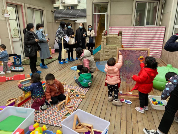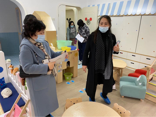 2020年12月3日市托幼处“2020年政府实事工程托幼一体工作”考察小组来到我园巡查指导托班开办工作。在园长等人的陪同下,考察小组查看了托班室内环境、户外场地以及保育能力等各项基本工作。