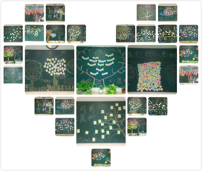 我的心愿树:每位同学写出对自己的期待和鼓励,用这种特殊的方式,许下最美好的愿望。一颗颗“心愿树”,承载着孩子们的希望,枝繁叶茂,耸入云天。