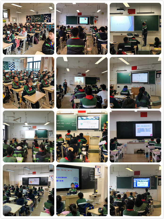 心理主题班会丰富多彩:对于不同年龄段的学生,有特殊的心理需求和认知规律。关注学生心理健康,创设良好的心理环境,帮助同学们走出心理误区,减少内心的矛盾。我校开展了一至五年级“我行,我能行”,六年级“展望四年”,七年级“学习习惯”八年级“自我管理”,九年级“魅力高中”心理主题班会。